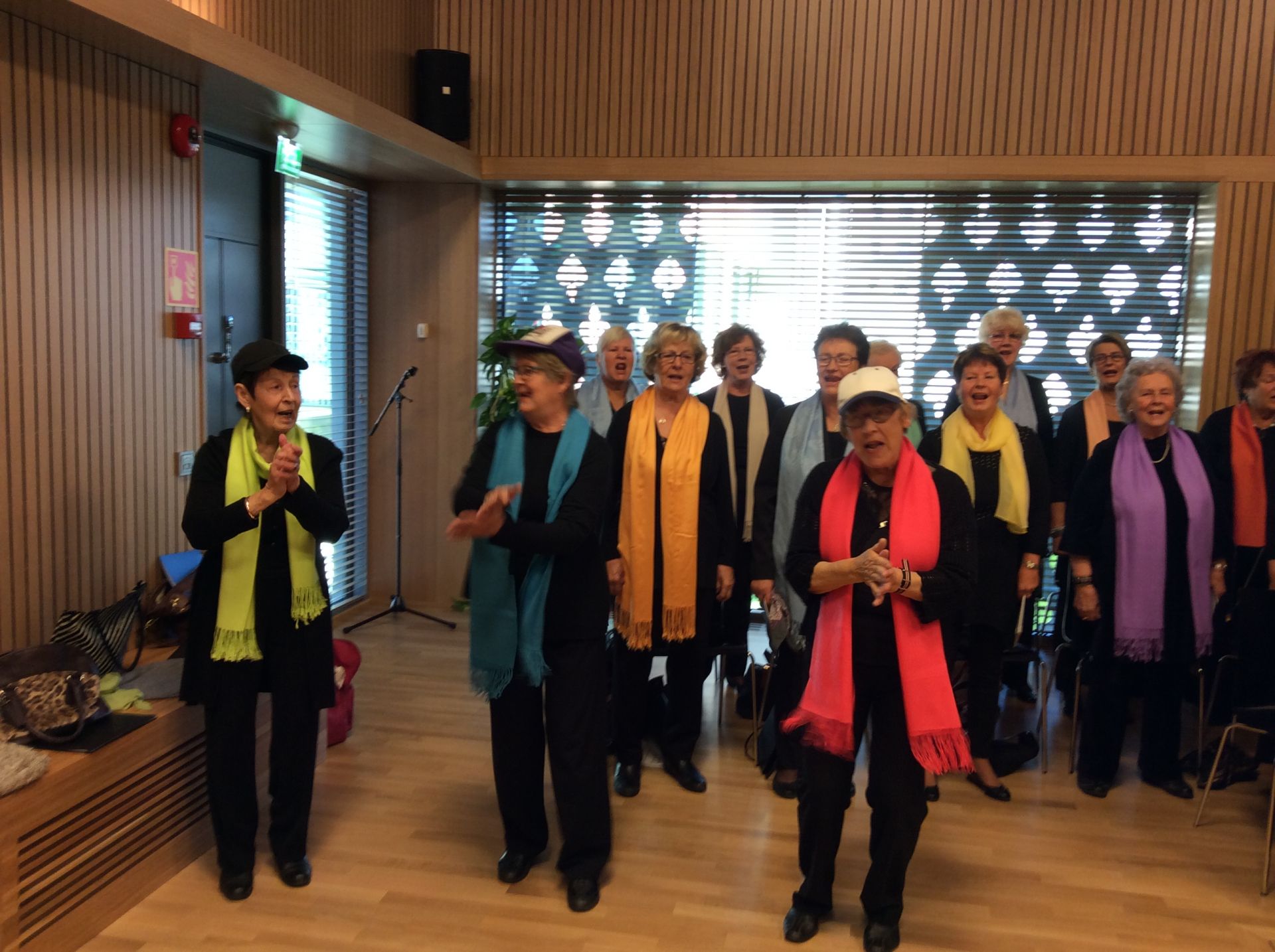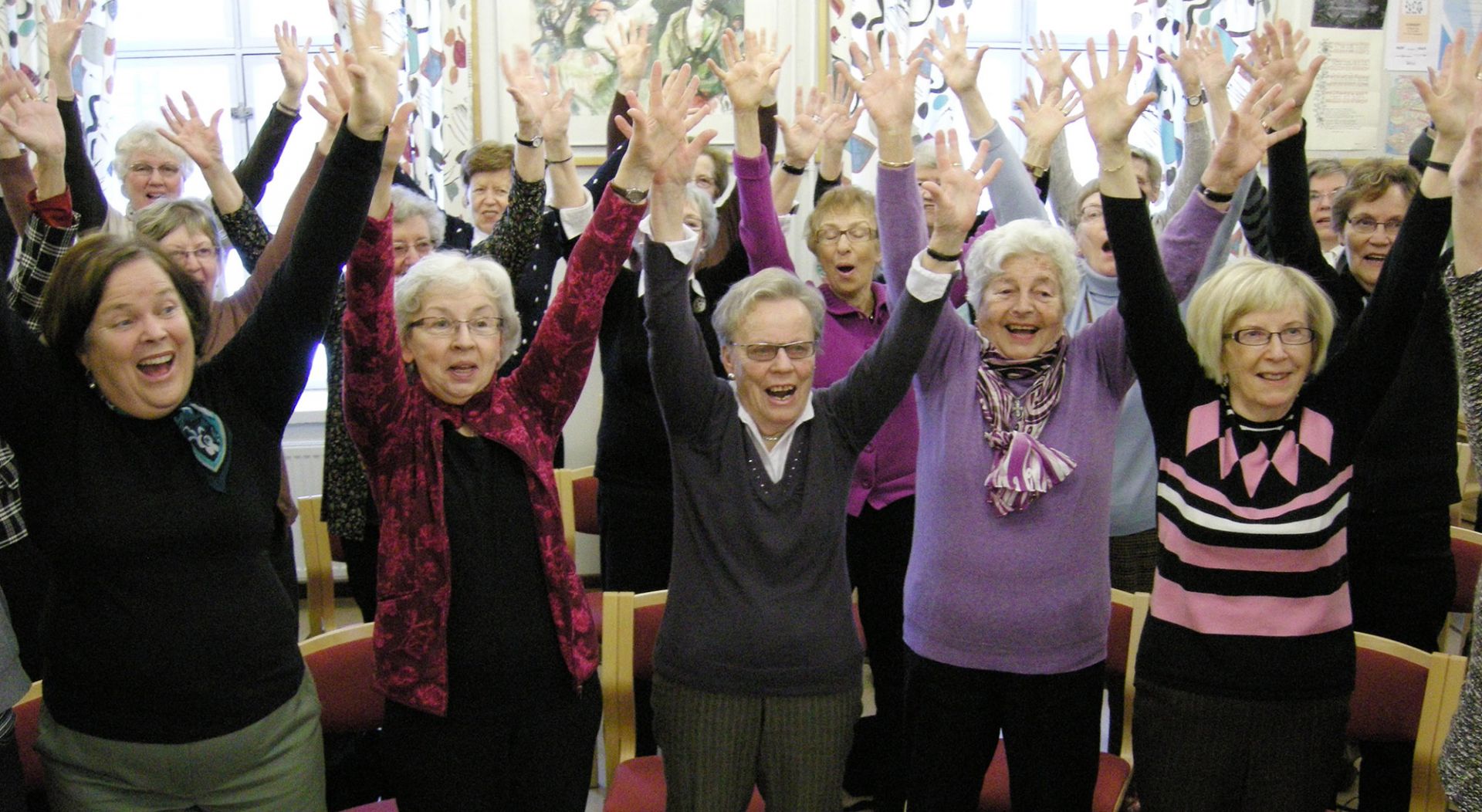 SilverQuinns besöker Folkhälsanhuset 6.10.2015 och Sjunger "Tre små gummor"